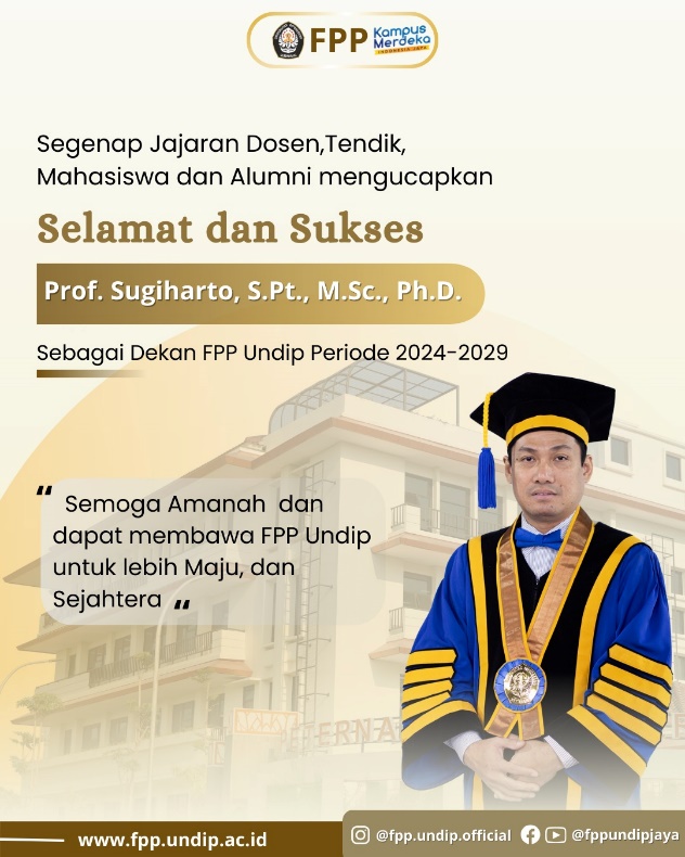 On this occasion, Prof Sugiharto also expressed his gratitude to former dean who has held the mandate to carry out extraordinary duties and contributions as Dean of FPP Undip for the 2019-2024 period with the achievement of FPP Undip as a World-Class Faculty.
